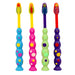 This fun toothbrush set comes with soft rubber handles for easy grip for little hands.