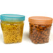 These lightweight, square plastic containers come with colorful airtight screw-on lids in blue and orange, ideal for storing dry goods, snacks, spices, coffee, or office supplies.