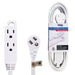 White Uninex 12ft Flat Angle Plug Extension Cord turns one electrical outlet into 3 safely and conveniently.