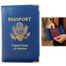 1 Pack Blue Genuine Leather Passport Holder Cover With Gold US Emblem Travel Wallet Case