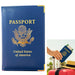 blue passport holder genuine leather travel wallet case cover us passport protector american emblem gold lettering passport organizer for men women unisex business gift luxury passport sleeve document holder slim travel gear usa passport book cover premium leather passport wallet travel accessories