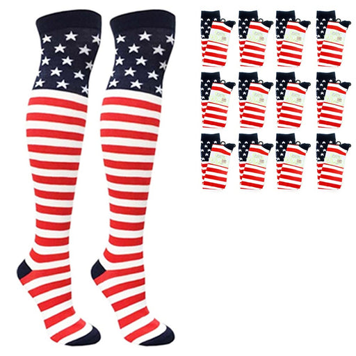 ATB7 reviews12 Pair USA Red White Blue Socks American Flag Over Knee High Woman Striped 9-11 Nationalism at its finest you are able to keep your spirit in ste...