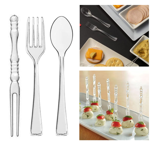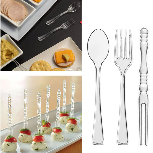 ATB13 reviews144 Pc Clear Mini Forks Spoons Picks Appetizer Short Disposable Tableware Utensil Dessert Party Clear Mini Forks, Spoons, and Picks Elegant way to...
