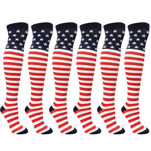 ATB11 reviews6 Pair USA Red White Blue Socks American Flag Over Knee High Womans Striped 9-11 Nationalism at its finest you are able to keep your spirit in ste...