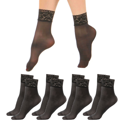 ATB4 Pairs Women's Ankle High Trouser Socks Lace Opaque Sheer Nylon One Size Opaque sheer ankle high trouser socks Made of high quality fabric, super...
