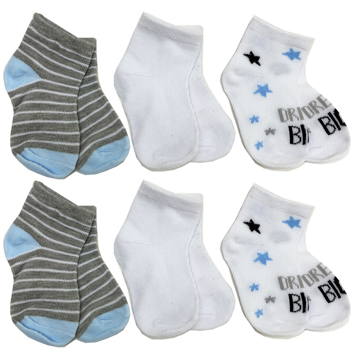 6 Pairs Children's Assorted Baby Boy Socks Infant Soft Cotton Blend Crew 3-9mo