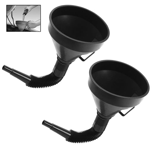 ATB7 reviewsSet of 2 Auto Car Motorcycle Boat Flexible Large Funnel Oil Water Gas Fuel Spout Black ! This set includes 4 separate pieces: 2X funnels and 2X f...