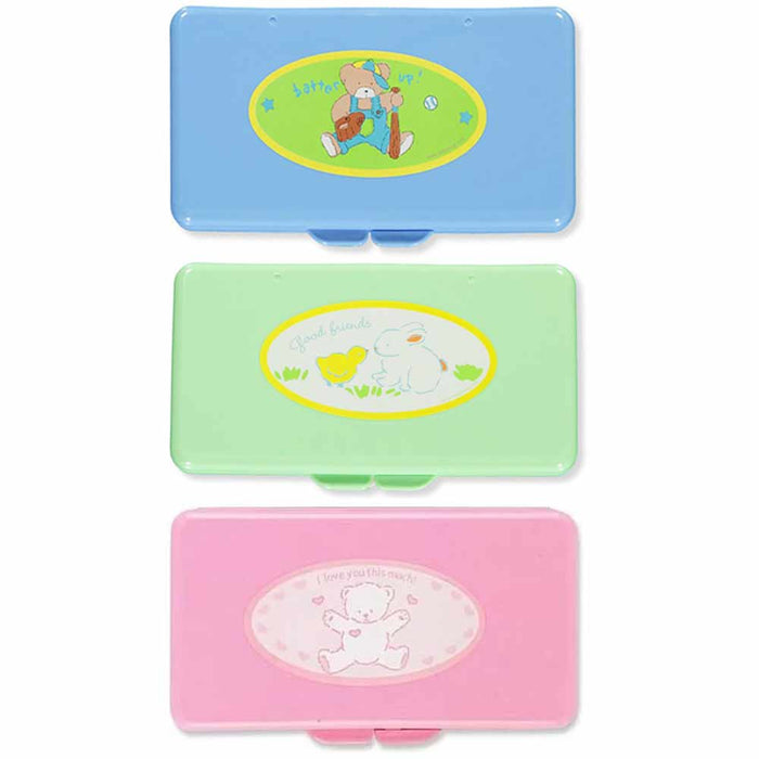 The plastic baby wipe travel case comes with a cartoon character printed on it