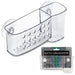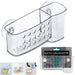 Keep your sink or shower organized with this convenient Bath Organizer featuring a transparent plastic holder with large and small sections, a circle cutout design on the front, slotted drainage holes on the bottom and two strong suction cups on the back for easy mounting.