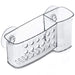 Keep your sink or shower organized with this convenient Bath Organizer featuring a transparent plastic holder with large and small sections, a circle cutout design on the front, slotted drainage holes on the bottom and two strong suction cups on the back for easy mounting.
