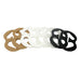 There are 8 clips per package: 2 off white, 2 black, 2 beige and 2 transparent.