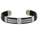 Silver Tone Pure Copper Black Leatherette Bracelet Cuff Magnetic Healing Relief