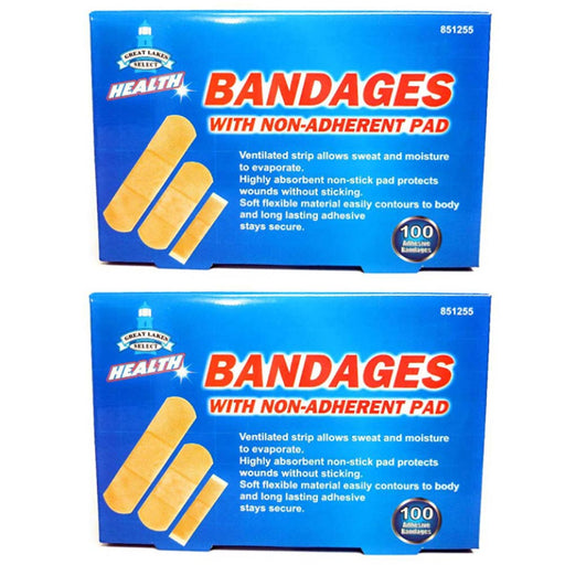 ATB12 reviews2 Pack of 100 Ct each Assorted Sizes Adhesive Bandages Non-Stick Pad Water Resistant First Aid Heal! * Ventilated strip allows sweat and moisture ...