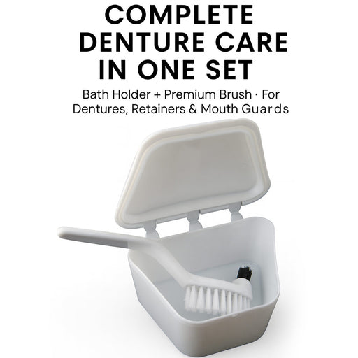 ATB10 reviewsBrand New White Denture Bath Holder With Brush !! Premium white brush measures: 5 1/2" length, cleaning soaking cup measures approximately 4" width...