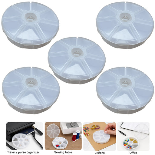ATBNo reviews5Pcs 7 Compartments Plastic Clear Round Craft Gem Beads Display Storage Case Box Organizer Container Divider Jewelry Box Sewing Box Craft Organizer...