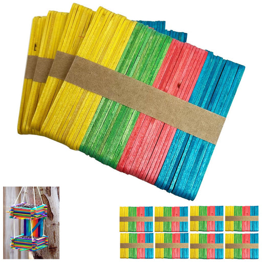 ATB6 reviews400 Pc Colored Wood Popsicle Sticks Art Project School Kids Wooden Craft Sticks 3.75" x 0.37 These colored craft sticks (popsicle sticks) are gre...