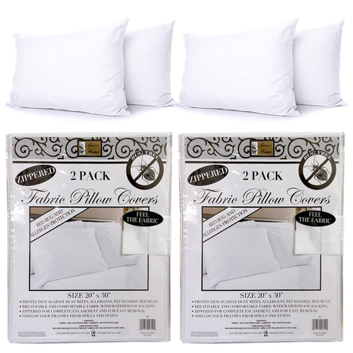 ATB16 reviews4PC Bedding Waterproof Pillow Zippered Protector Premium Fabric Breathable Cover !! These brand new soft fabric zippered pillow covers measures 2...