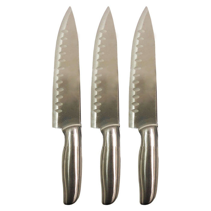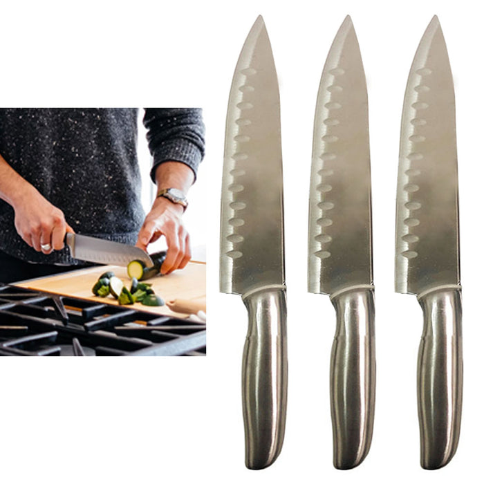3 Japanese Santoku Knives 12.5" Stainless Steel Forged Sharp Hollow Edge Kitchen