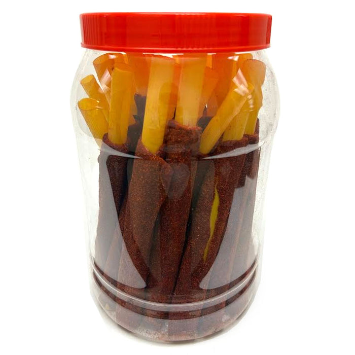 Made with high-quality ingredients, these sticks are packed with an unmistakable sweet and sour taste, wrapped around a straw and perfectly balanced with a mouthwatering spiciness from a little sprinkle of chili powder and salt.
