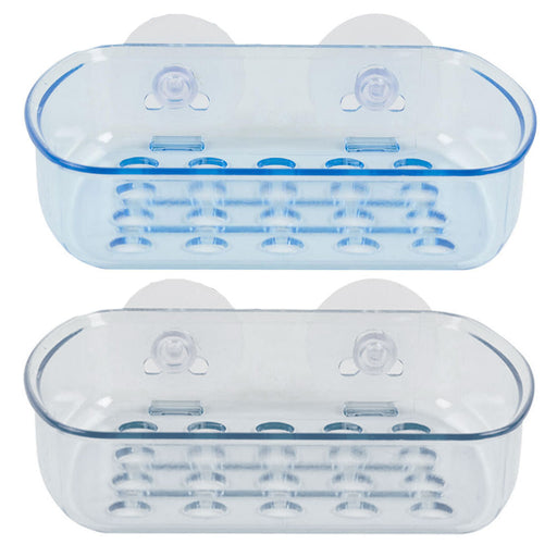 ATB2 Pc Suction Cup Soap Dish Draining Holder Bar Saver Tray Bathroom Shower Rack *Clear or Clear Blue Color SHIPPED RANDOMLY Upgrade your bathroom or...