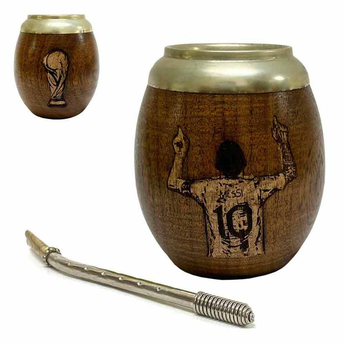 Algarrobo Mate Gourd Yerba Cup Argentina Bombilla Straw Messi Handmade Carved