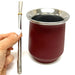 Argentina Yerba Mate Cup Tea Gourd Stainless Steel Bombilla Set Double Wall Burgundy