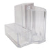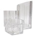 Sleek and compact, this clear acrylic makeup organizer fits perfectly on a shelf or dresser top.