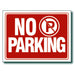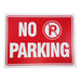 "No Parking "Sign is Solid Flexible Plastic, Bright Red Background With High Visibility Bright White Lettering / Markings.