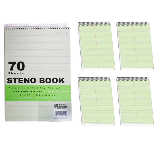 ATB10 reviews4 BAZIC Steno Notebook 6" X 9" Green Tint Gregg Ruled Office Notepad Perforated 70 Sheets Color: Green tint paper. Perforations For Easy Page Tea...