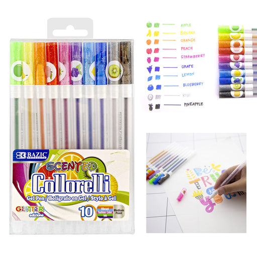 ATB7 reviews10 PC Scented Gel Pens Color Glitter Art Markers More Ink Kids Coloring Books !! Sparkle fruit scented gel pen comes in an assortment of colors f...