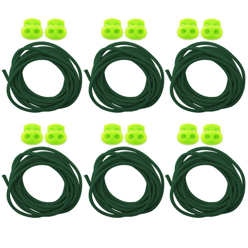 ATBNo reviews6 Pairs Elastic No Tie Shoelaces 35” Long Dark Green w/ Neon Green Lock Stoppers 2 Wholes – Adjustable Stretch Laces for Running, Triathlon, Kids &...