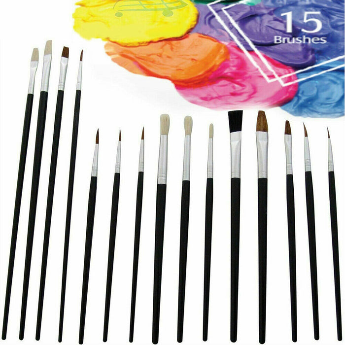15 Paint Brush Set All Purpose Oil Watercolor Acrylic Art Craft Artist Painting