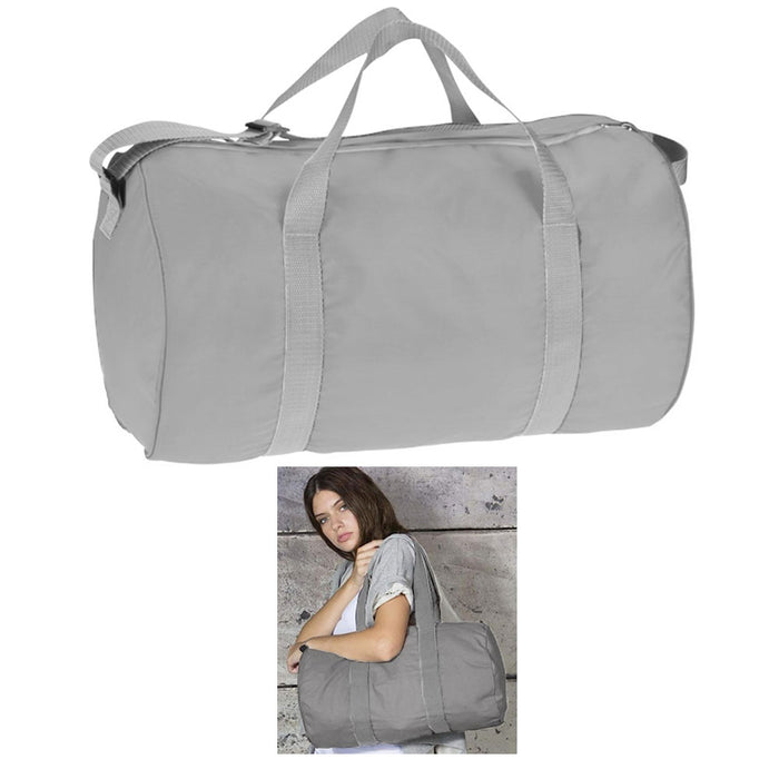 1 Pc Grey Barrel Duffel Bag Lightweight Carrying Tote Travel Luggage Sports Gym