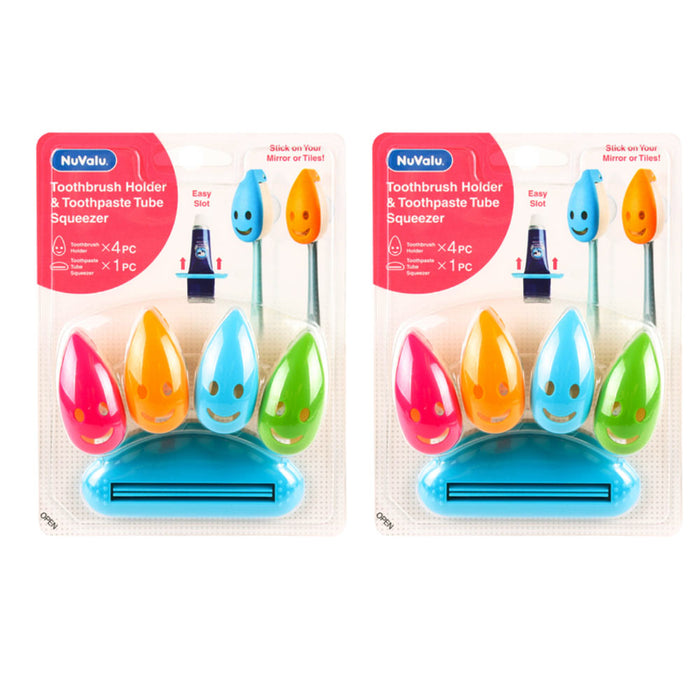 This listing is for 2 packs of 5 pieces each pack. Set Includes: 8 toothbrush holders (smiley faces) and 2 toothpaste squeezer.