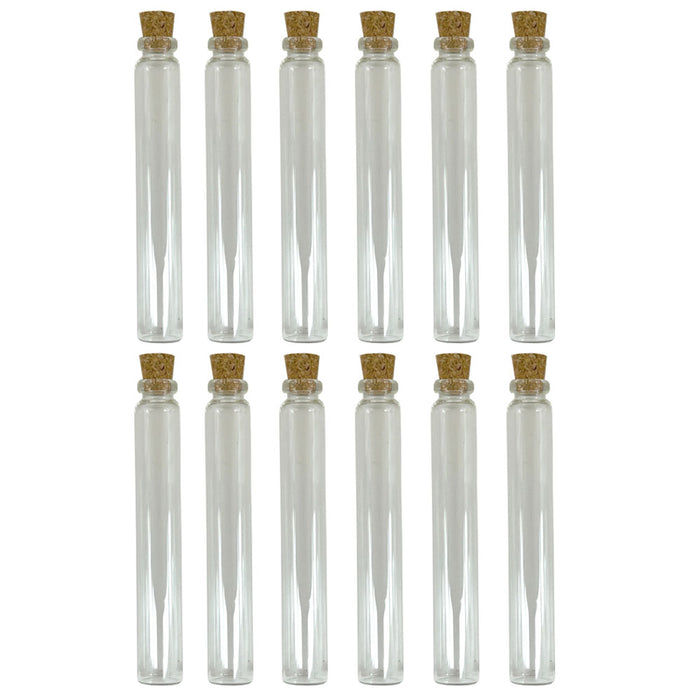 12 Pc Clear Glass Jar Bottles Container Cork Caps Lids Craft Reusable Vial Storage Gold Panning Prospecting