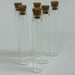 Clear miniature glass vessels with corks for DIY necklace pendants, perfume bottles, baby shower decorations and baby shower favors.