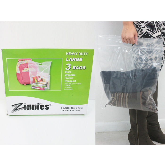 This heavy duty 15" W x 15" H, 38.1 cm x 38.1 cm clear storage bag features a zip lock to easily seal and secure your clothing, shoes, towels, house decor, linens and other items.