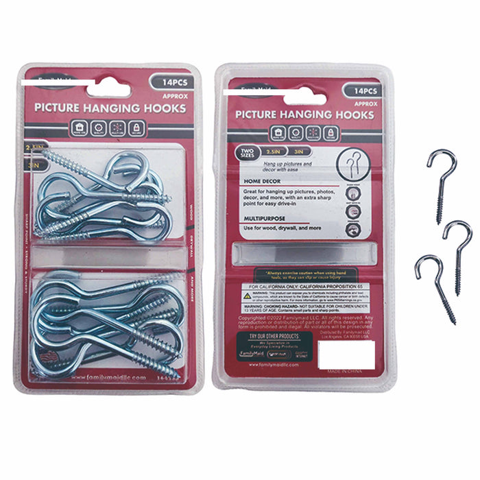14 Pc Assorted Screw Eye Utility Hooks Steel Picture Wall Hanging Ceiling Sizes 3" - 2.5"