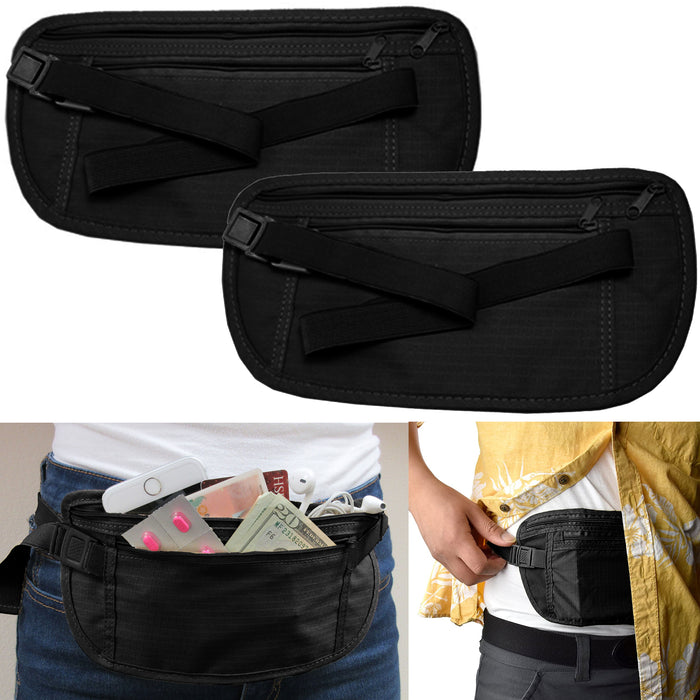 2 Waist Belt Bag Travel Pouch Hidden ID Passport Security Money Compact Black