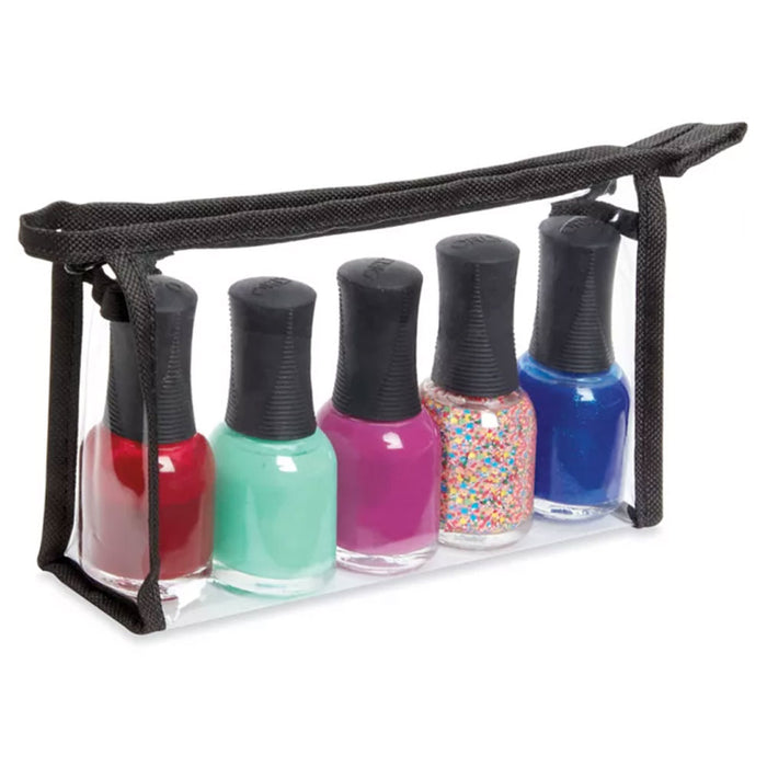 This clear vinyl zippered case measures 6" X 1.5" X 4" great for traveling, commuting insert your cosmetics lipsticks, crafts and more.