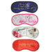 The stylish eye mask has a satin finish, its embroidered and measures 7.5” x 3.5”.