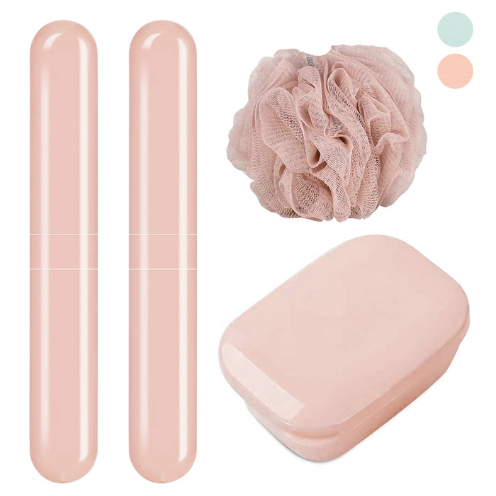 -4 Pc Toothbrush Holder Soap Dish Bath Containers Travel Set Organizer Portable