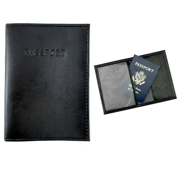 4 Passport Cover Holders Faux Leather ID Wallet Case Travel Black New !