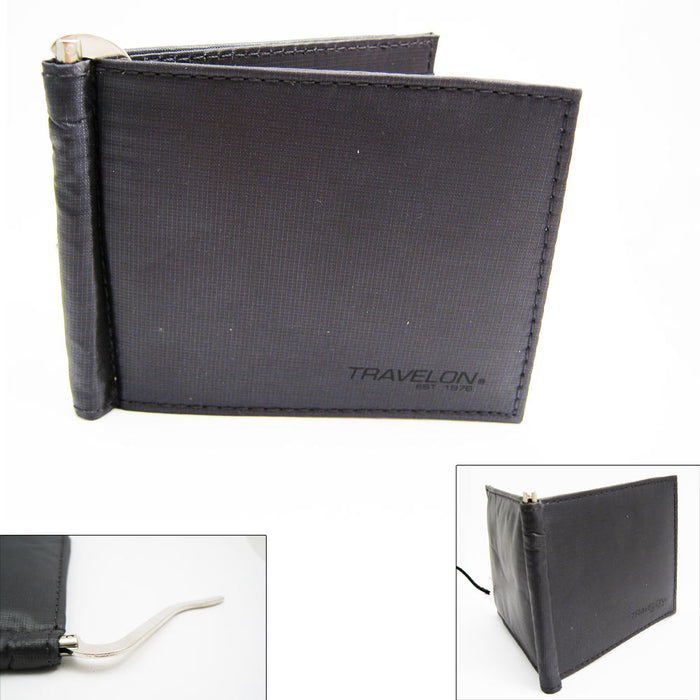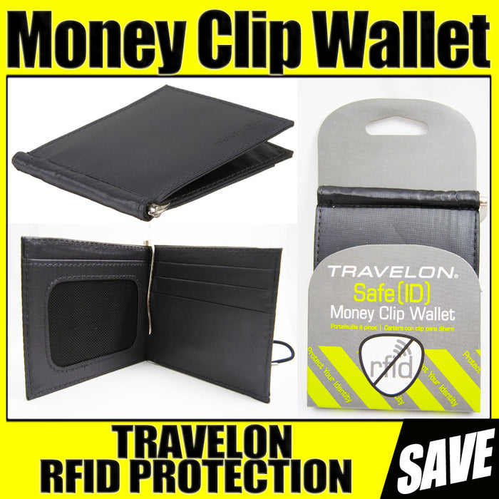 Safe Id Money Clip Men Wallet Black Leather Protect Slim Pocket Cards Travelon