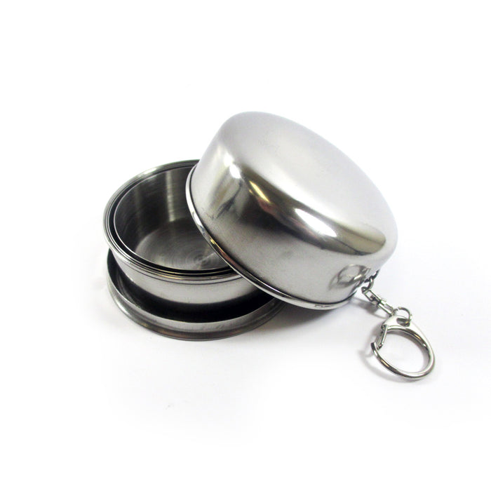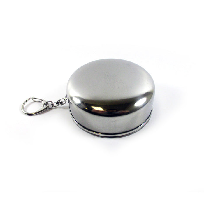 Great for in your backpack, glove box, tackle box, boat, etc. Perfect if you fancy a quick tipple while you're on the move, this little stainless steel cup folds down, telescope-style, into a case on a key ring.