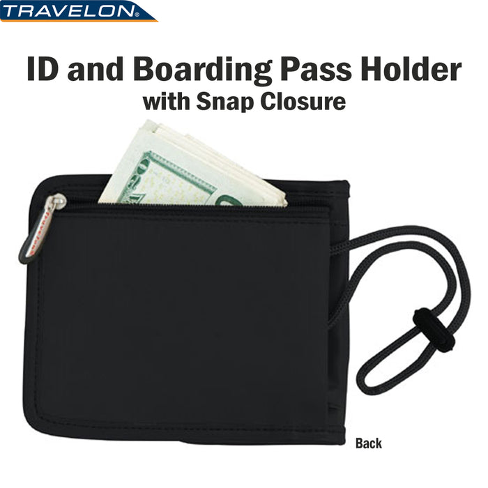 Travelon ID Boarding Pass Holder Snap Closure Secure Passport Travel Wallet Neck
