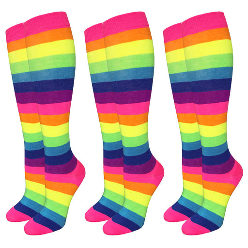 ATB7 reviews3 Pairs Neon Rainbow Stripe Knee High Socks Size 9-11 Fashion Bright Multi-Color ! The right pair of socks makes all the difference, these set of...