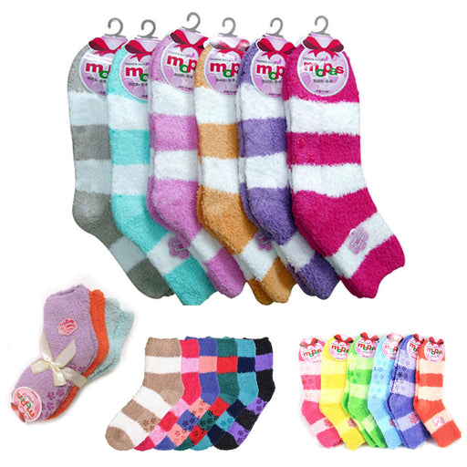 ATB12 reviewsSet Of 3 Random Color New Plush Soft And Fuzzy Socks For Women or Girls Non Skid Stripe Size 6-8 Winter Warm Assorted Colors ! Assorted colors-shi...