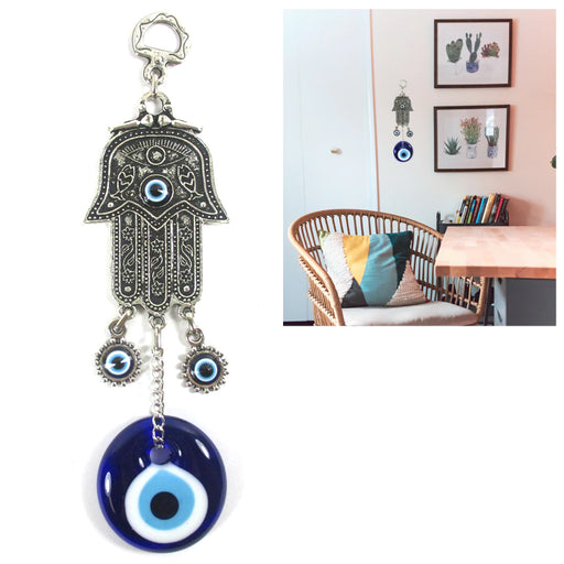 ATB12 reviewsTurkish Hand Hamsa Blue Evil Eye Home Blessing Charm Hanging Ornament Wall Decor ! The evil eye hanging decoration measures approx 7 1/4" in hei...