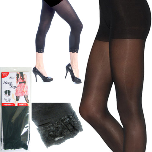 ATB7 reviews1 Women Footless Tight Capri Leggings Lace Trim Pantyhose Seamless Stretch Slim New !! This 1 footless black tight with lace trim tight long pants ...